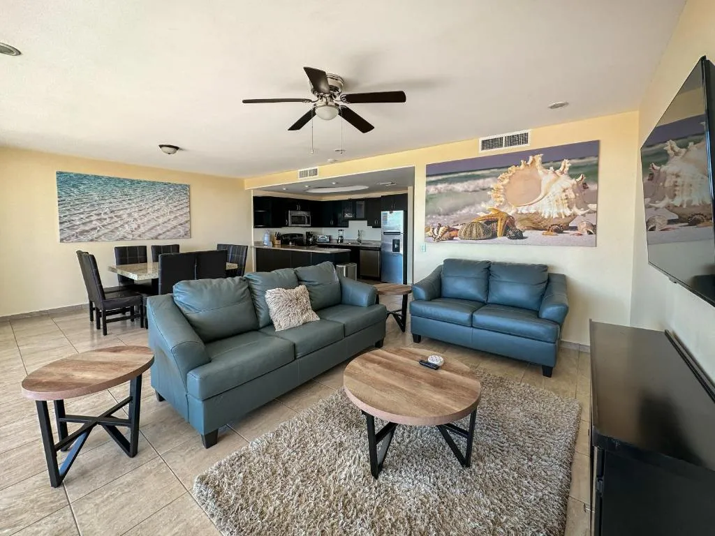 Erstaunliche Lage in der Nähe aller großartigen Preis #302 bietet Unterkünfte in Puerto Peñasco, 5 Minuten zu Fuß vom Strand von Las Conchas entfernt. Dieses Ferienhaus verfügt über klimatisierte Unterkünfte mit einer Terrasse. Das Ferienhaus bietet Parkplätze vor Ort, einen Schwimmbad im Freien und einen Aufzug. Mit kostenlosem WLAN bietet dieses Ferienhaus mit 2 Schlafzimmern einen Fernseher, eine Waschmaschine und eine voll ausgestattete Küche mit Geschirrspüler und Ofen. Handtücher und Bettwäsche werden im Ferienhaus angeboten. Für zusätzliche Privatsphäre verfügt die Unterkunft über einen privaten Eingang.